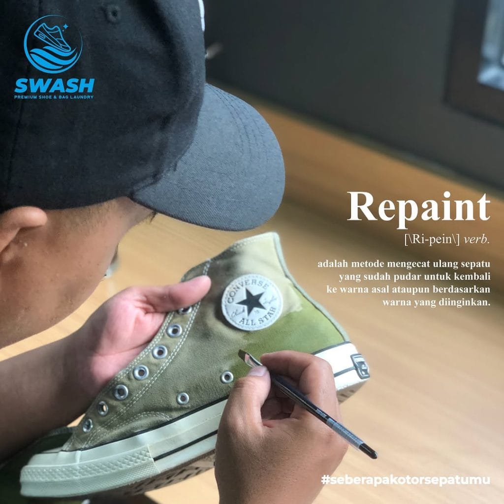 Metode mengecat ulang sepatu dan tas yang sudah pudar untuk kembali ke warna asal ataupun berdasarkan warna yang diinginkan