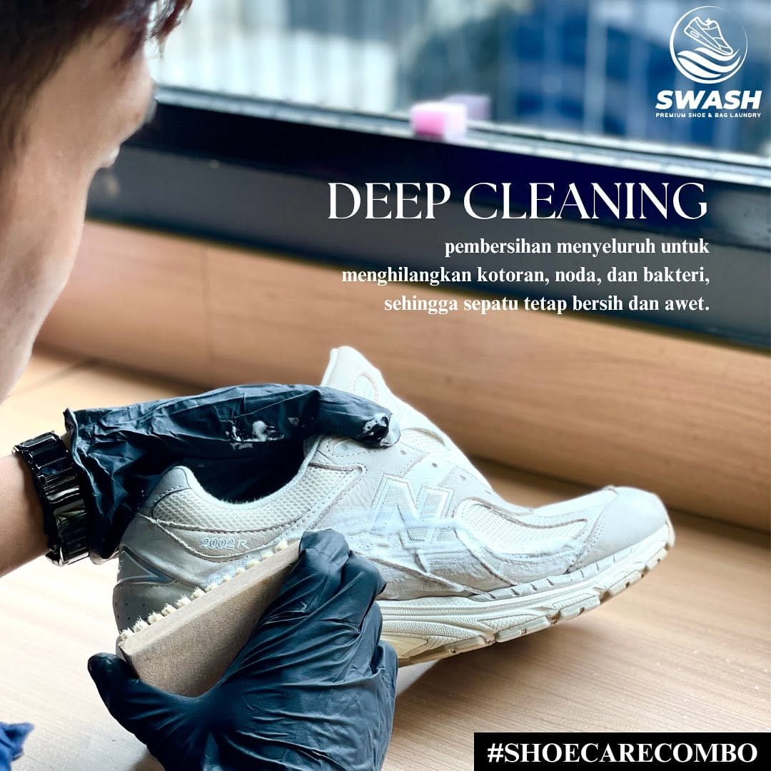 Pembersihan menyeluruh untuk menghilangkan kotoran, noda, dan bakteri. Sehingga sepatu, tas, topi dan dompet kamu tetap bersih dan awet